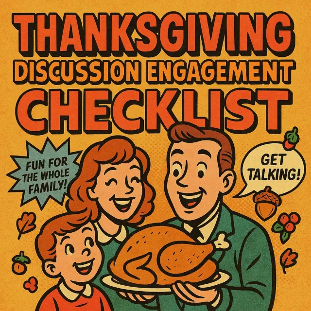 Download your Thanksgiving Discussion Engagement Checklist today and make this year’s gathering your most engaging and enjoyable Thanksgiving yet. Bring warmth, laughter, and meaningful conversation to your table with ease and confidence!